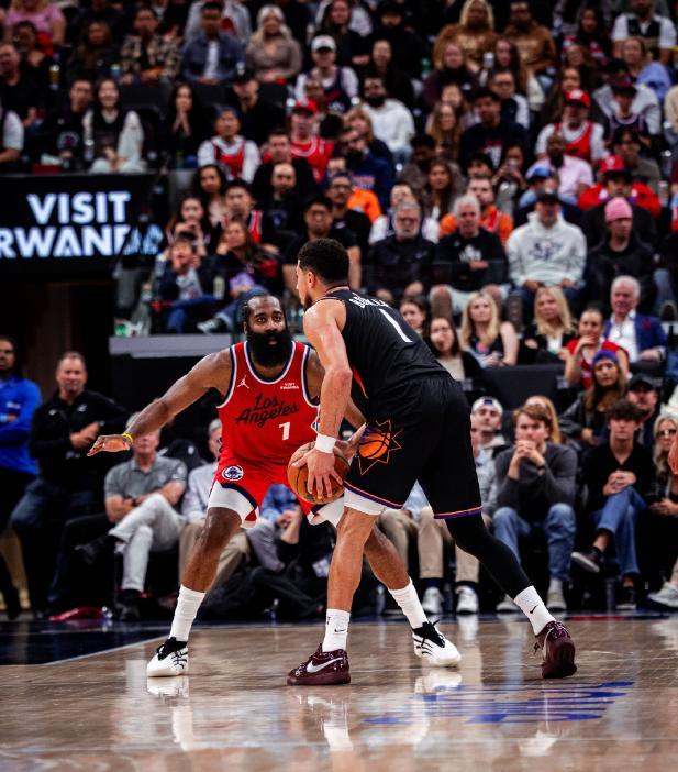 和布克直接对位的哈登,此役虽然也砍下了13分和13次助攻的两双数据,但是命中率惨不忍睹,15次出手只投中了4球,正负值更是全队垫底,核心球员对位完败,也是导致快船在主场输球的根本原因。