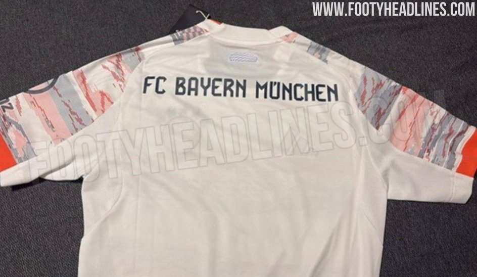 拜仁25-26赛季客场球衣曝光,白色搭配红色灰色抽象图案